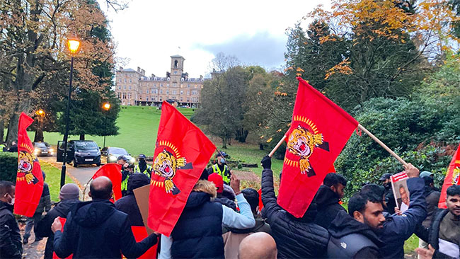 හිටපු කොටි ත‍්‍රස්තවාදීහු ජනපති නතරවී සිටි ස්කොට්ලන්තයේ ඩටල්ටී‍්‍ර හිල්ටන් හෝටලය වටලද්දී පොලිසිය ඔවුන්ව විසුරුවා හැරියේ නැත.