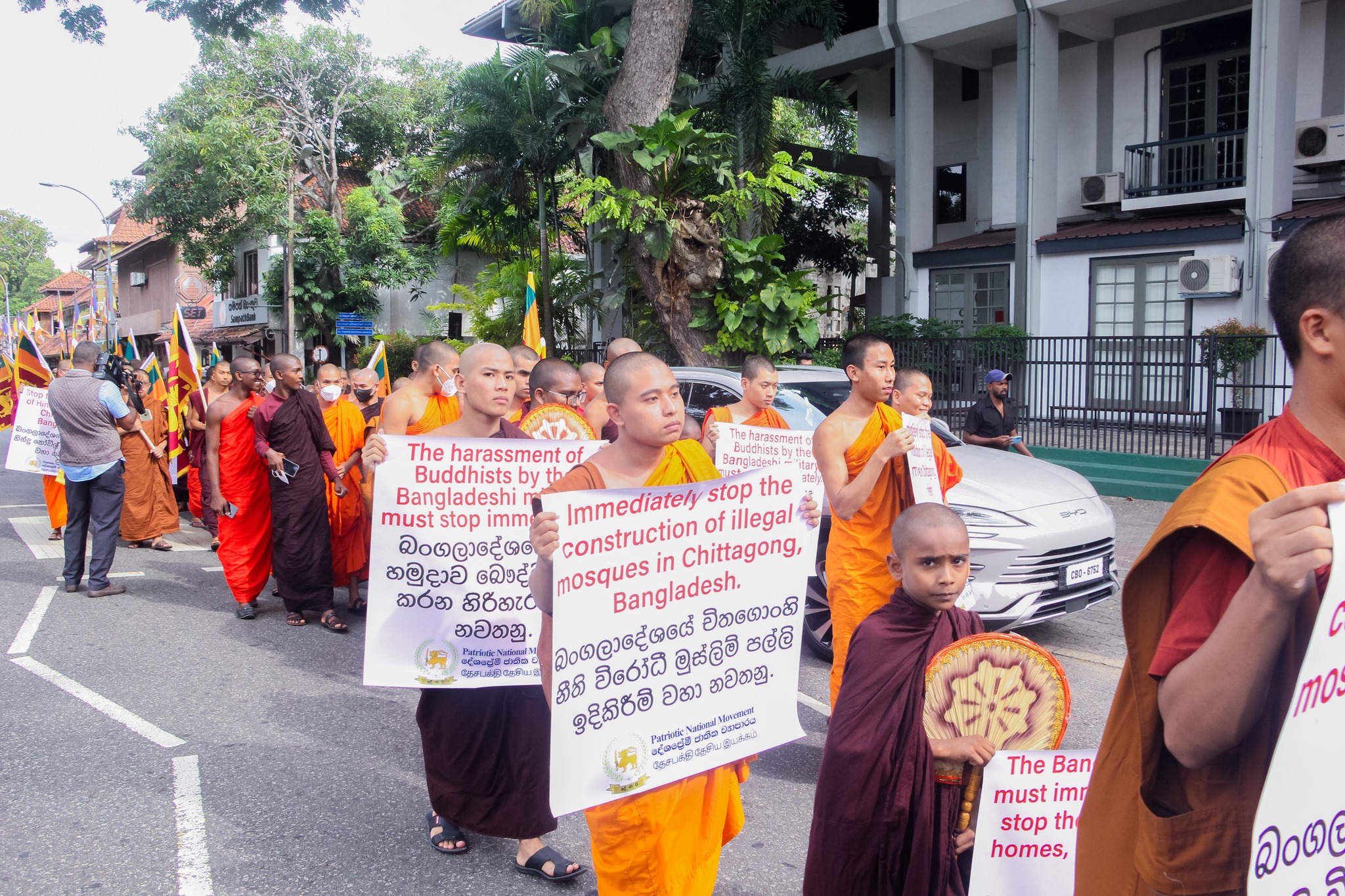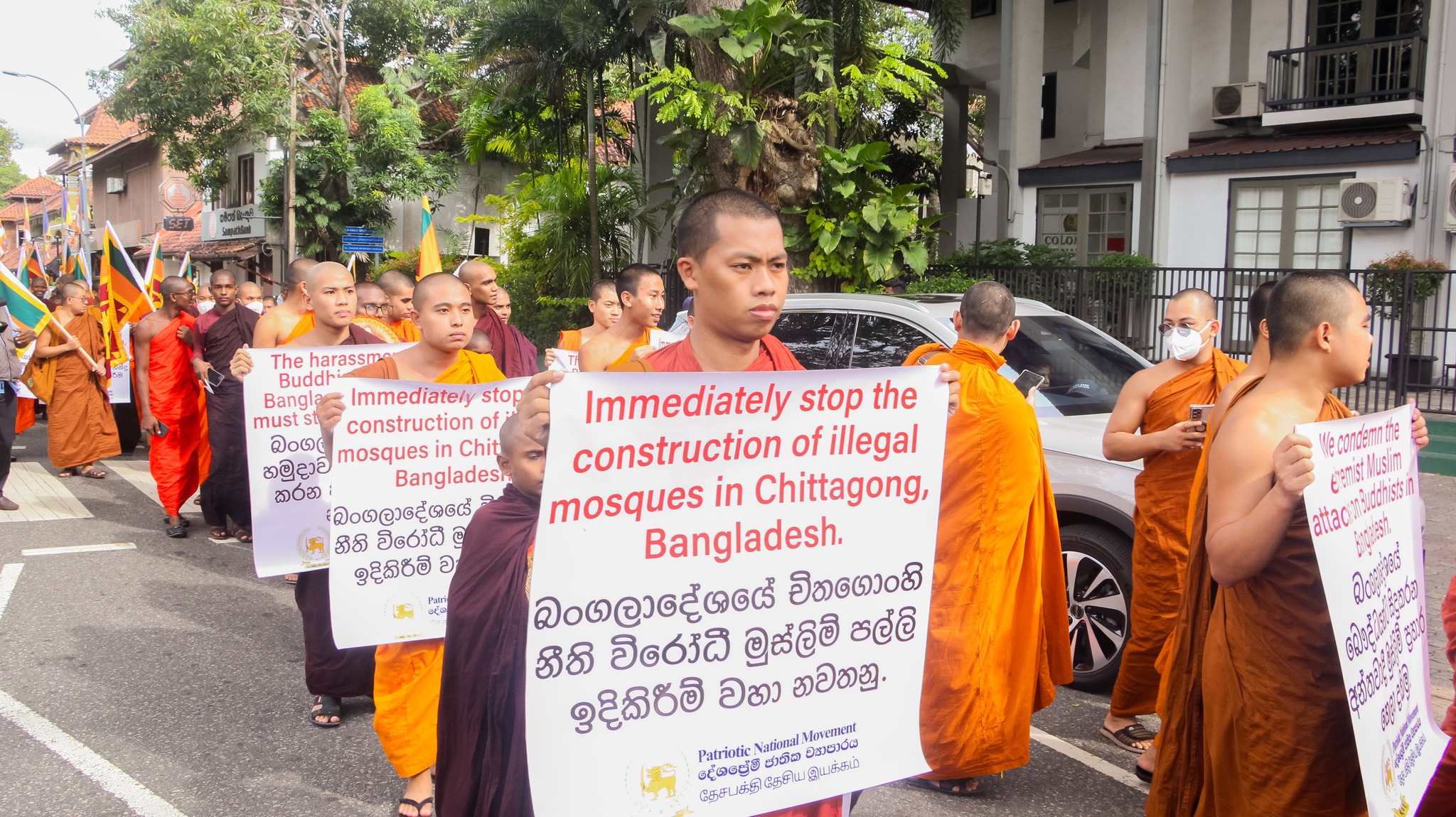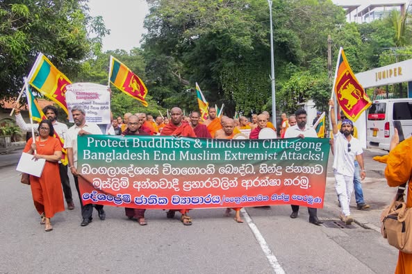 දේශප්රේමි ජාතික ව්යාපාරය සහ ත්රෛනිකායික භික්ෂු පෙරමුණ එකමුතුවෙන් බංග්ලාදේශයේ චිතගොංහි බෞද්ධ ජනතාවට සහ හින්දු ජනතාවට එල්ල වන මිලේච්ඡ මුස්ලිම් අන්තවාදී ප්රහාරවලට එරෙහිව 2025.10.14 වන දින ශ්රී ලංකාවේ බංග්ලාදේශ, මියන්මාර, තායිලන්ත සහ බුරුම ඇතුළු රටවල්වල භික්ෂූන් වහන්සේලාගේ මූලිකත්වයෙන් කොළඹ 07, සම්බුද්ධත්ව මහා විහාරයේ සිට සාමකාමී විරෝධතා පා ගමනක් බංගලාදේශ මහකෝමසාරිස් කාර්යාලය දක්වා ගමන් ගත්හ.