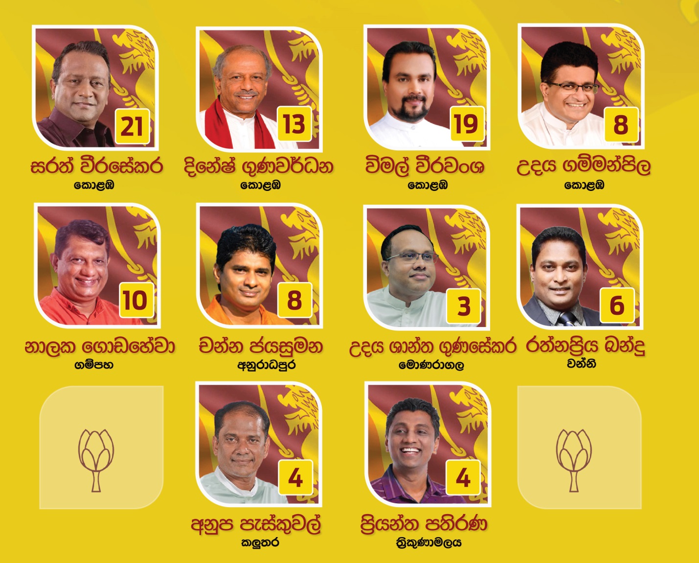 දේශ හිතෛෂි ශ්‍රී ලාංකික එකමුතු වේ අපේක්ෂකයන් 10 දෙනා