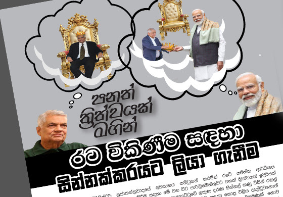 • රට විකිණීම සඳහා සින්නක්කරයට ලියා ගැනීමට ගෙනා පනත් ත්‍රිත්වයක් ගැන දේශහිතෛෂී ජාතික ව්‍යාපාරයෙන් හෙළිදරව්වක්