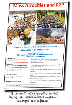 ලීලාදේවි ප්රමුඛ උතුරේ ද්රවිඩ කාන්තාවන් ජිනීවා මානව හිමිකම් කවුන්සිලයට පැමිණෙන්නේ අතුරුදන් වූවන් ගැන සාක්ෂි ඉදිරිපත් කිරීමටය. මෙලෙස බොරු සාක්ෂි ඉදිරිපත් කිරීම සඳහා ඔවුන්ට කටුනායක ගුවන් තොටුපළින් යෑමටත් ආපසු පැමිණීමටත් ඉඩ ලැබුණේ යහපාලන රජය ඔවුන් ගැන නිරීක්ෂණය කිරීම බුද්ධි අංශවලට තහනම් කර තිබියදීය. මෙම අතුරුදන් වූවන්ගේ ඡාවාරම සඳහා ලීලාදේවි ඇතුළු පිරිසට සහය දැක්වීමට බටහිර සහරාවේ බෙදුම්වාදී ක්රියාකාරිනියන්ද කැමරුන් සහ කාෂ්මීර් බෙදුම්වාදීන්ද ඉදිරිපත් වී ඇත. මෙවන් පසුබිමක් මැද උතුරේ අතුරුදන් වූවන්ගේ තොරතුරු සෙවීමට යැයි දක්වමින් අතුරුදන් වූවන්ගේ ඡාවාරම මෙහෙය වන ප්රධාන ඡාවාරම්කරුවා මරියදාස් බොස්කෝ බව හෙළි වී ඇත. මේ අතර ලීලාදේවි නඩරාජා නැමැත්තිය ශ්රී ලංකා හමුදාව ජාත්යන්තර අධිකරණයට යොමු කරන ලෙස ද ඉල්ලා ඇත.