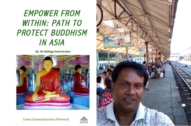 Photo: Collage of the book cover and Kalinga Seneviratne’s picture at a railway station in a Southeast Asian country.