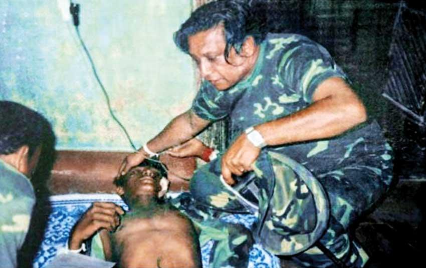 Gen. Kobbekaduwa taking care of a wounded soldier