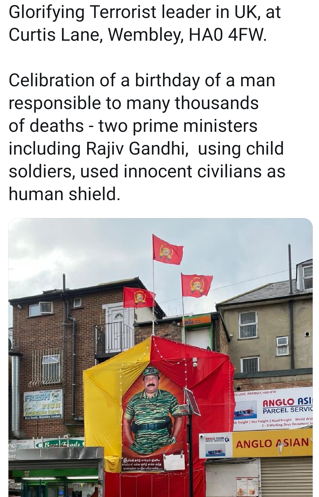 Glorifying Terrorist leader in UK, at Curtis Lane, Wembley, HA0 4FW