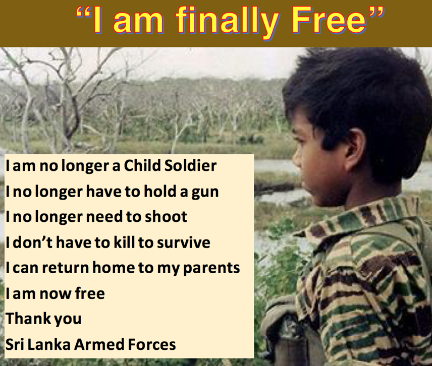 How about thanking Sri Lanka’s Armed Forces for saving Tamil children from becoming Child Soldiers!