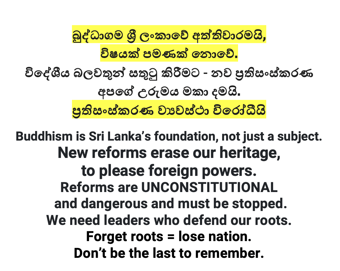 Restore Buddhism as a mandatory, standalone subject — from Grade 1 for Buddhist children.