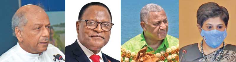 Foreign Minister Dinesh Gunawardena-Foreign Minister Dinesh Gunawardena-Lazarus Chakwera of Malawi-Fiji’s Ambassador to UN Nazhat Shameem Khan