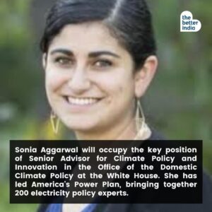 - (Ms) Sonia Aggarwal – Senior Advisor – Office of Domestic Climate Policy