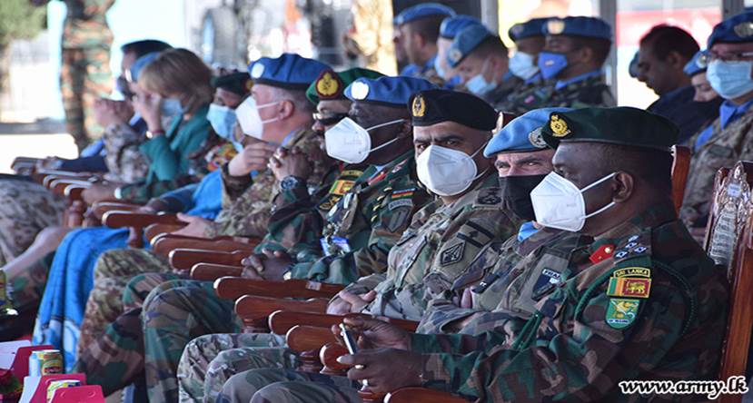 A Guard Turnout accorded by Sri Lankan peacekeepers to Major General Vikum Liyanage in accordance with military traditions afterwards paved the way for him to address the Sri Lankan troops.