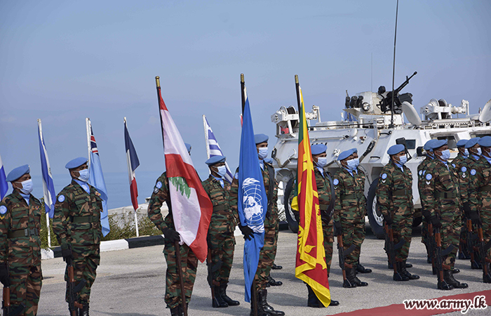 The occasion was dignified and brought about a spirit of celebrations, amidst fluttering UN, Lebanon and Sri Lankan National flags in the backyard as the parade commenced before a large gathering of invitees.