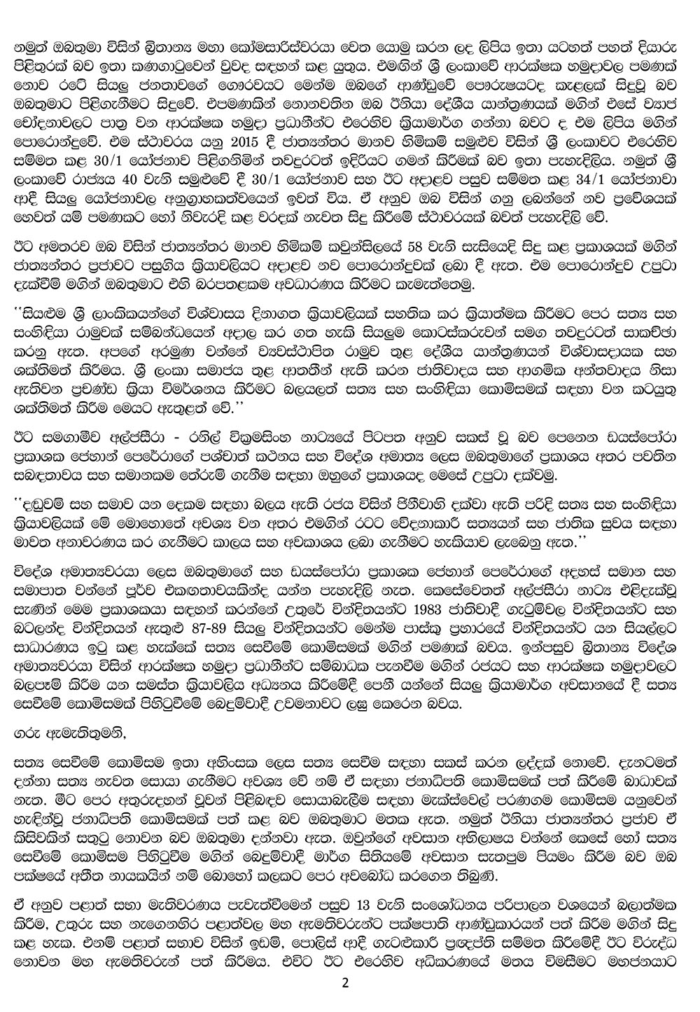 එම සම්පූර්ණ ලිපිය පහතින්