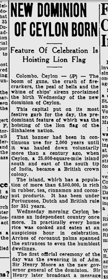 The Lion flag of the Sinhalese nation, raised once more in 1948