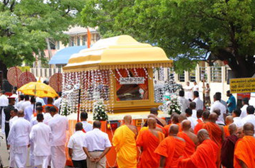 Casket of  Nayake Thero is being taken in procession from
