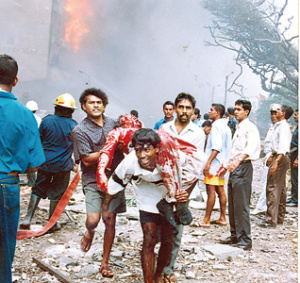 The deadliest LTTE attack on a civilian target in the history of the group’s operations occurred in 1996. The Central Bank (located in the twin towers of the Colombo World Trade Centre) was bombed and 90 people were killed and 1,400 injured. In 1997, another bombing at the WTC killed 13 and injured hundreds.