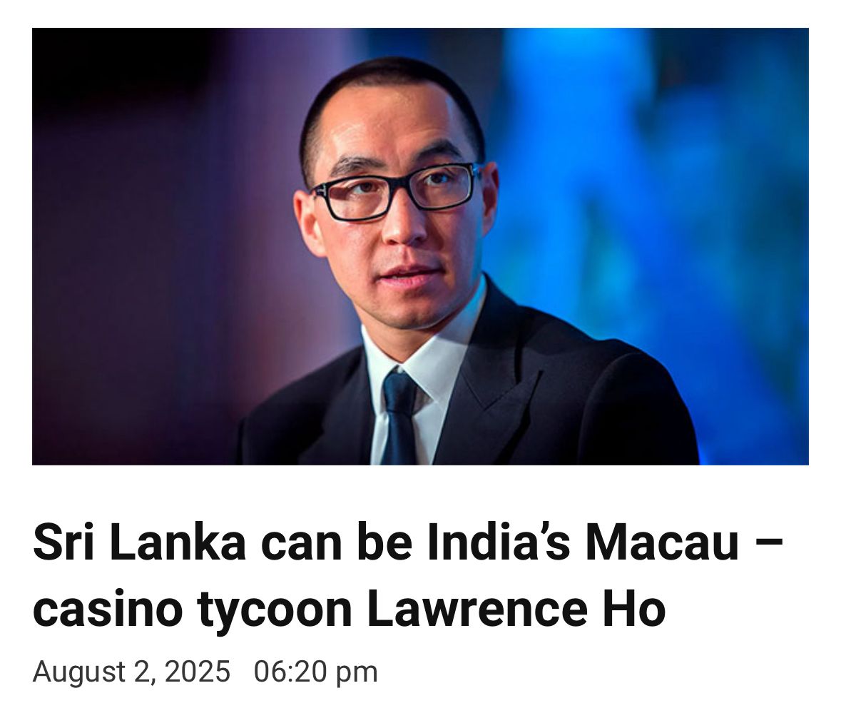 The recent statement by casino tycoon Lawrence Ho that “Sri Lanka can be India’s Macau” is not just careless — it is dangerous on multiple fronts: political, economic, cultural, and strategic.