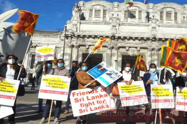 Sri Lankans in Italy have staged a protest against the report compiled by the United Nations High Commissioner for Human Rights on Sri Lanka.