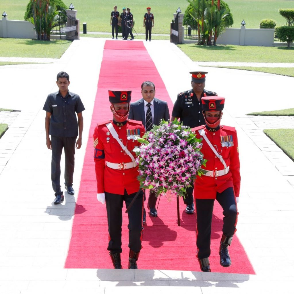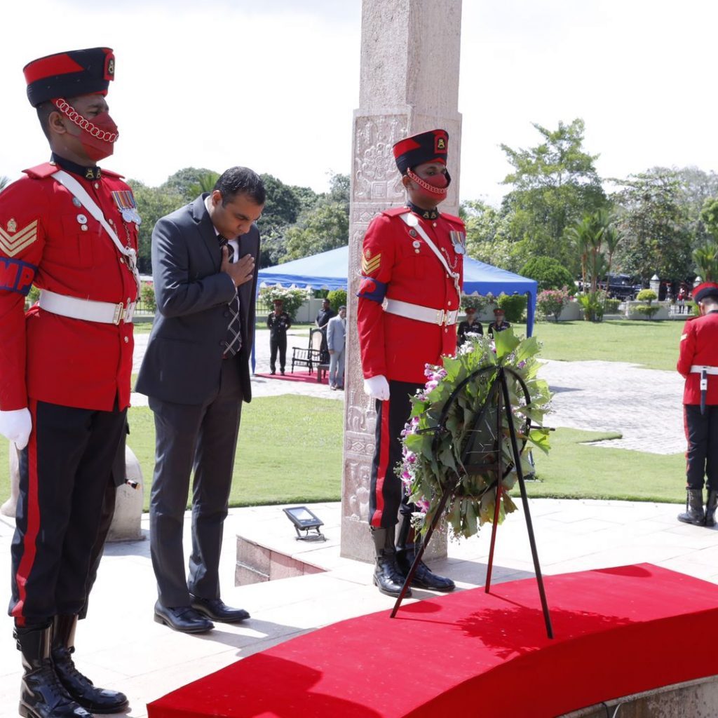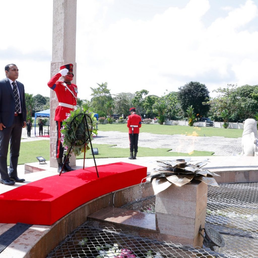 The State Minister of Defense, Hon’ble Pramitha Bandara Thennakoon paid tribute to the nation’s war heroes by laying flowers at the National Heroes’ Memorial at Sri Jayawardenepura Kotte.