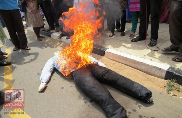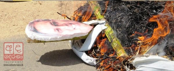 In February 2015 hardly 2 months after TNA supported regime change, Sumanthiran’s & Sambanthan’s effigies were burnt. Toasted in January, both Sumanthiran and Sambanthan were roasted by Tamils in the UK.