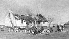 Boer civilians watching British soldiers blow up their house with dynamite: Boers were given 10 minutes to gather belongings
