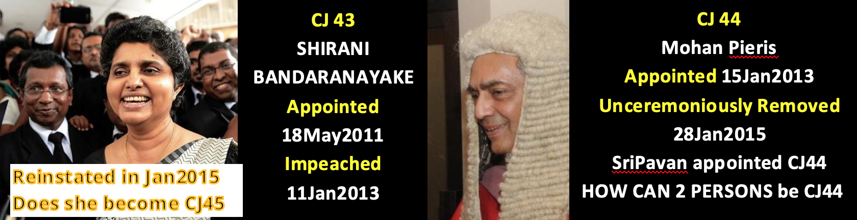 - 30 January 2015 Justice K Sripavan is appointed Chief Justice44 & not CJ45 (as Mohan Pieris was CJ44)