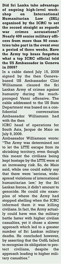 Why didn’t Sri Lanka continue to refrain from effectively using British cables that had been obtained by Lord Naseby after near a three-year legal battle and wartime US Defence Advisor Lt. Colonel Lawrence Smith’s taking a view 100 percent contrary to the US and its allies as regards the accountability issue, at the 2011 Colombo Defence seminar? Nothing can be as important as the US official’s statement exclusively reported by The Island as it was made just two months after the much debated highly controversial Darusman report’s release. The split in the war-winning team with Fonseka’s entry into politics in late 2009, too, also contributed to Sri Lanka’s overall failure. Instead of countering lies, the first Rajapaksa administration squandered millions of USD in foolish image building projects.